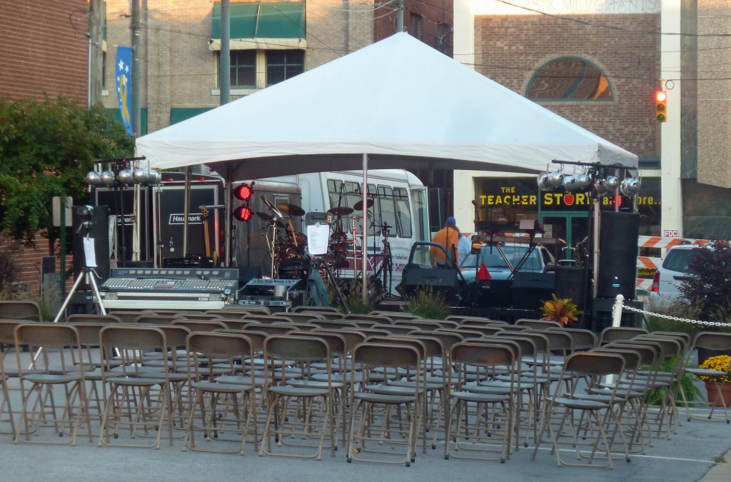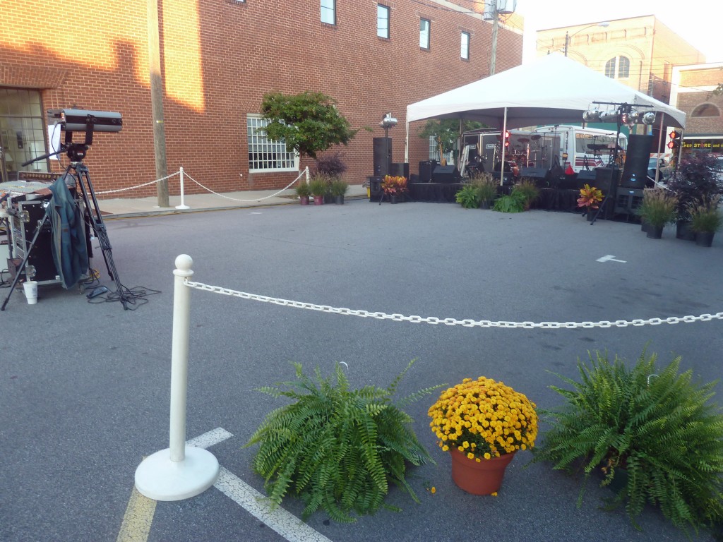 Unfortunately I got there too early to take a good picture of the event, but here is the stage and area setup before it started.
