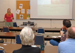 An expert from the National Wildlife Federation who helps educational institutions go “green” visited Vance-Granville Community College on Nov. 17 to talk with faculty, staff and students. Carly Queen, Southeast regional campus field coordinator for the NWF Campus Ecology program, was the special guest in the final installment of a series of three “lunch and learn” sessions organized by the VGCC Sustainability Committee during the fall 2011 semester. The sessions, which also included presentations by VGCC Automotive Systems Technology program head Fred Brewer and Carpentry program head Keith Tunstall, were part of a college-wide focus on conservation and staying up-to-date with the latest economic and environmental trends. Among other initiatives, VGCC now offers a certificate in Sustainability Technologies.