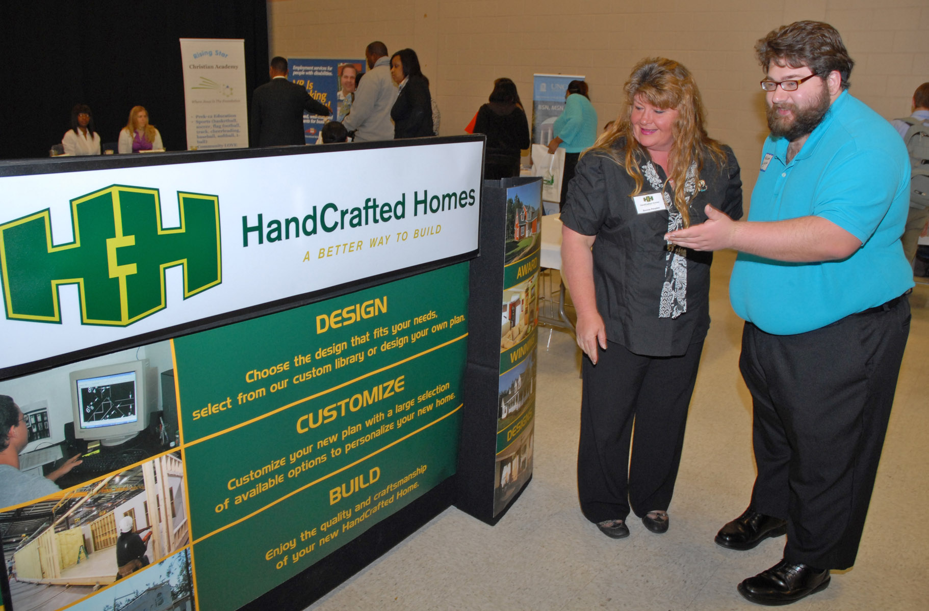 Pictured above, Adam Light of Oxford, a VGCC Information Systems Security student, talks with Bonnie Peoples, a representative of Henderson-based HandCrafted Homes, one of the businesses that participated in Career Day.