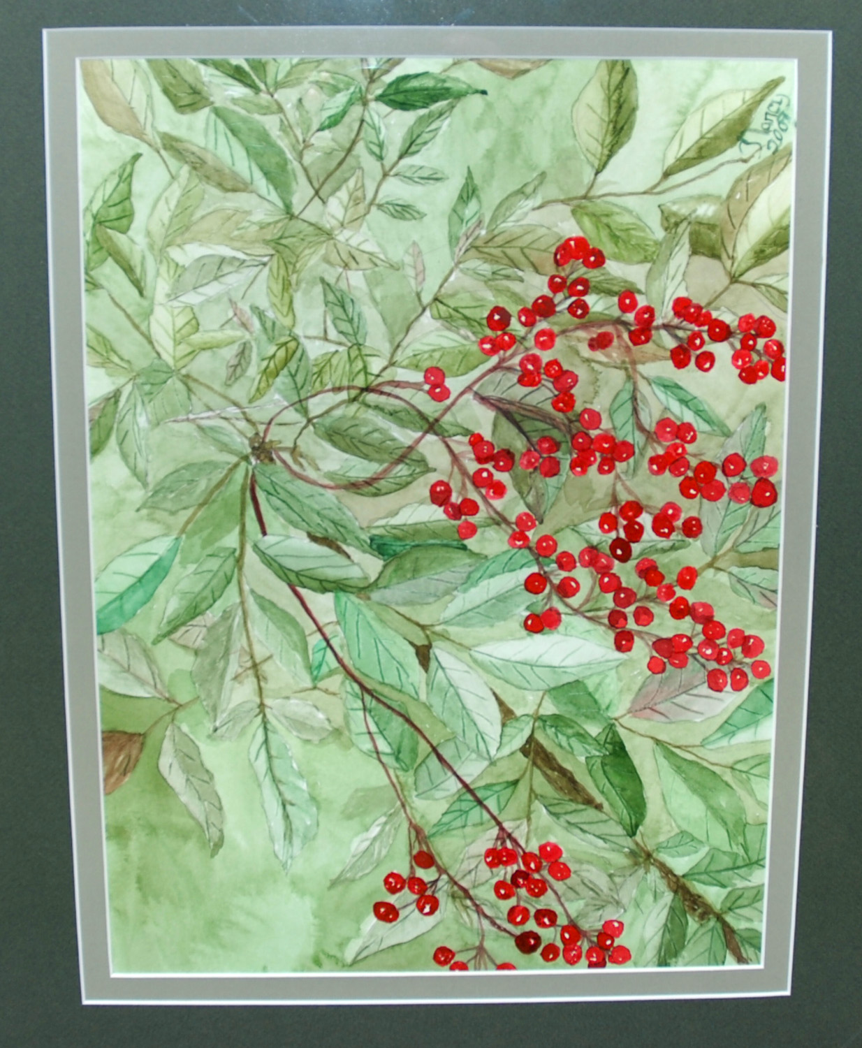 Pittard, a student in VGCC personal enrichment art classes who has won prizes at Kerr Lake Art Society shows co-sponsored by the college, said that her painting, called “Bush Out the House,” was inspired by her view of a beautiful Nandina bush from inside her home.
