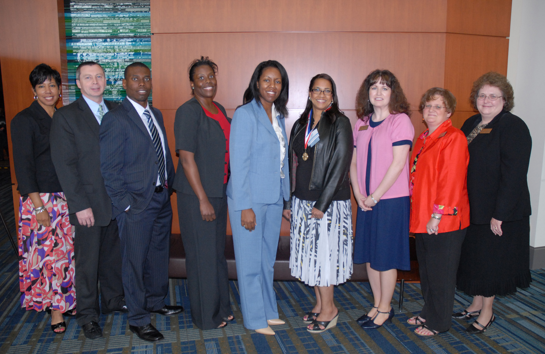 VGCC representatives at the North Carolina Community College System’s annual excellence event included, from left, Vice President of Instruction Dr. Angela Ballentine, Vice President of Student Affairs Gene Purvis, Assistant Director of Financial Aid Brian Clemmons, Radiography program head/instructor Angela Thomas, President Dr. Stelfanie Williams, Academic Excellence Award recipient Sharon Lark, Executive Assistant to the President April Perkinson, Administrative Assistant to the Dean of Arts & Sciences Deanna Stegall and Director of Human Resources Katherine Williamson. (VGCC Photo)