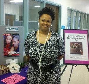 Renale Williams Giles of Safe Space, Inc. is seen here at VGCC’s Franklin County Campus with her materials promoting Sexual Assault Awareness Month. (VGCC photo)