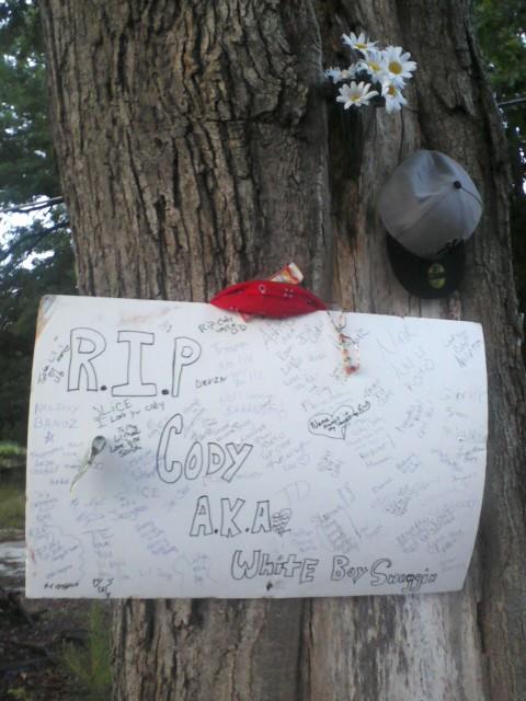 At the news of his death, a road side vigil was established by family and friends at the spot Cody was hit.