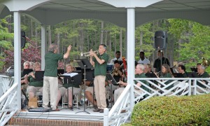 From within the Gazebo on VGCC’s Main Campus, the Vance-Granville Community Band performs with featured soloist Dave Arner of Henderson on trumpet, during the concert on May 13. (VGCC photo)
