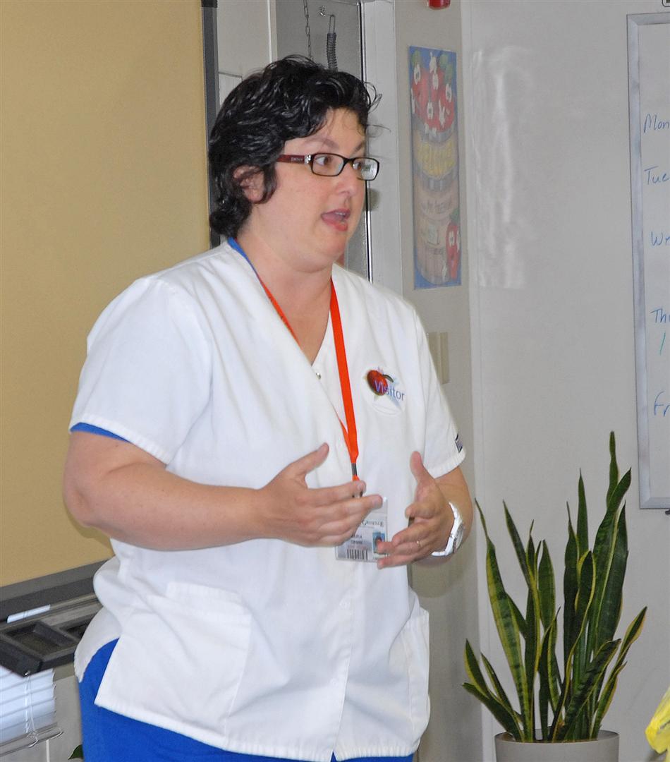 VGCC Nursing instructor Dr. Maria Orsini talks about education and allied health careers to students at Granville Central High School in May 2012. (VGCC photo)