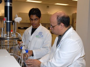 From left, Jason Melendez and his father, Manuel “Manny” Melendez, both of Oxford, train in the Biotechnology lab on VGCC’s Main Campus in this photo from 2008. Jason graduated with a Bioprocess Technology degree in Dec. 2009, while Manny followed in May 2010. Both went on to work in cosmetic or pharmaceutical manufacturing, and Manny is currently working toward a degree in pharmaceutical science at North Carolina Central University. (VGCC photo)