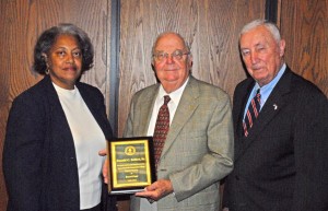HONORED — The Board of Trustees honored its former chair, Donald C. Seifert, Sr. of Henderson, with a plaque thanking him for his service to the Board. Seifert had served as Board chair from 2003 through 2012 and continues to serve as a trustee. Pictured, from left: current Chair Deborah F. Brown of Henderson, Seifert, and Vice-Chair Stanley H. Fox of Oxford. (VGCC photo)