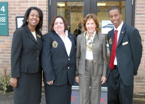 From left, Vance-Granville Community College President Stelfanie Williams, student ambassador Theresa Chiplis of Norlina, U.S. Sen. Kay Hagan and ambassador Tory Young of Oxford, at the conclusion of the senator’s “Conversations with Kay” event at VGCC’s Franklin County Campus. Chiplis is studying Global Logistics Technology and Accounting at VGCC, while Young is enrolled in the Accounting and College Transfer programs. (VGCC photo)