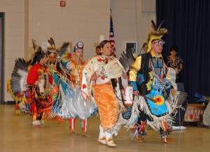 Dancers from the Haliwa-Saponi Tribe make their “grand entry” into the VGCC Civic Center, as they begin their performance during VGCC’s Native American Appreciation event. (VGCC photo)
