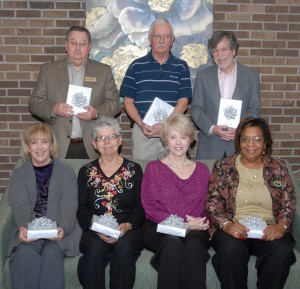 Among the most recent VGCC retirees were, seated from left, Jenny Johnson of Mebane, Blanche Haning of Raleigh, Diane Finch of Henderson and Francine Davis of Butner; standing, from left, Garland Elliott of Henderson, Ray Allen of Oxford and Ken Ferruccio of Norlina. Not pictured: retirees Yvonne Alston, Sue Wooten Grissom, Gloria Freeman, Helen Holt, Laura McCullough, Bill Tucci, David Baird, Morris Casper, Sue Zimmerman and Theresa Brown. (VGCC photo)