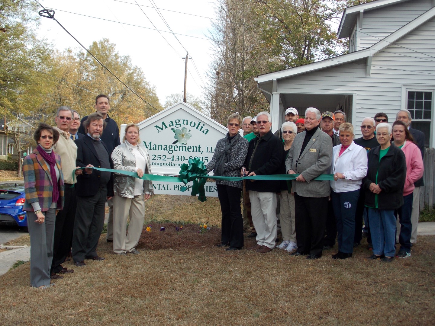 A ribbon cutting ceremony was held on Friday, November 15th at 10 AM for Magnolia Management, LLC to celebrate their business and membership with the Henderson-Vance Chamber of Commerce. Specializing in residential single and multi-family investor-owned properties, Magnolia Management LLC moved into its offices at 719 S. Chestnut St. in Henderson at the beginning of August, 2012.
