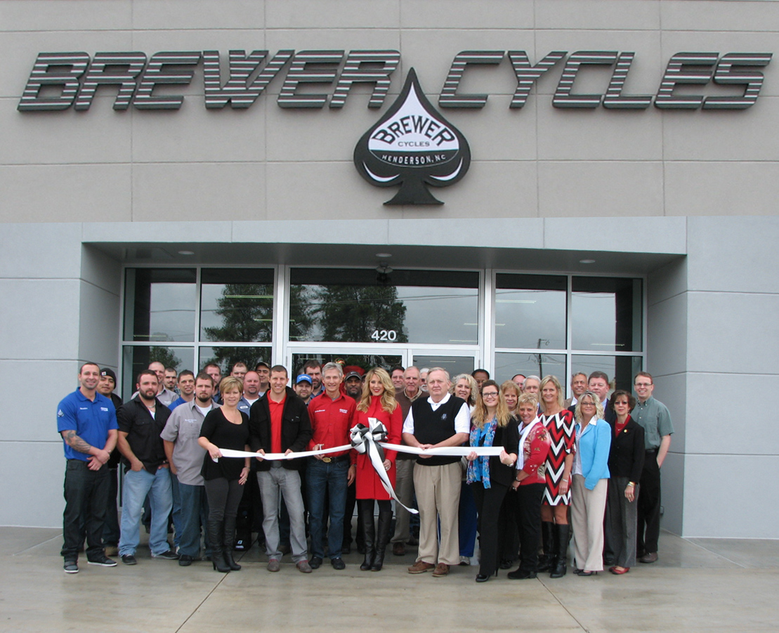A ribbon cutting was held today for BREWER CYCLES located at 420 Warrenton Road in Henderson. Brewer Cycles Inc. originated in January 1981 as a single-line Yamaha dealership and was a one-person operation. 32 years later they now have 25 experienced employees providing exceptional customer service. Over time they have added Polaris, Sea-Doo, Kawasaki, Honda, KTM, Kymco & Can-Am to their product lines. In September 2013 they opened an additional 12,500 square-foot showroom to house ATVs, utility vehicles and personal watercraft. They have a lounge area where customers can relax while waiting on their unit in service. The original showroom now features their motorcycle and dirt bike inventory, and houses their Parts and Accessories Department. Their expansion comes 20 years to the day that they opened for business at their current location in 1993.