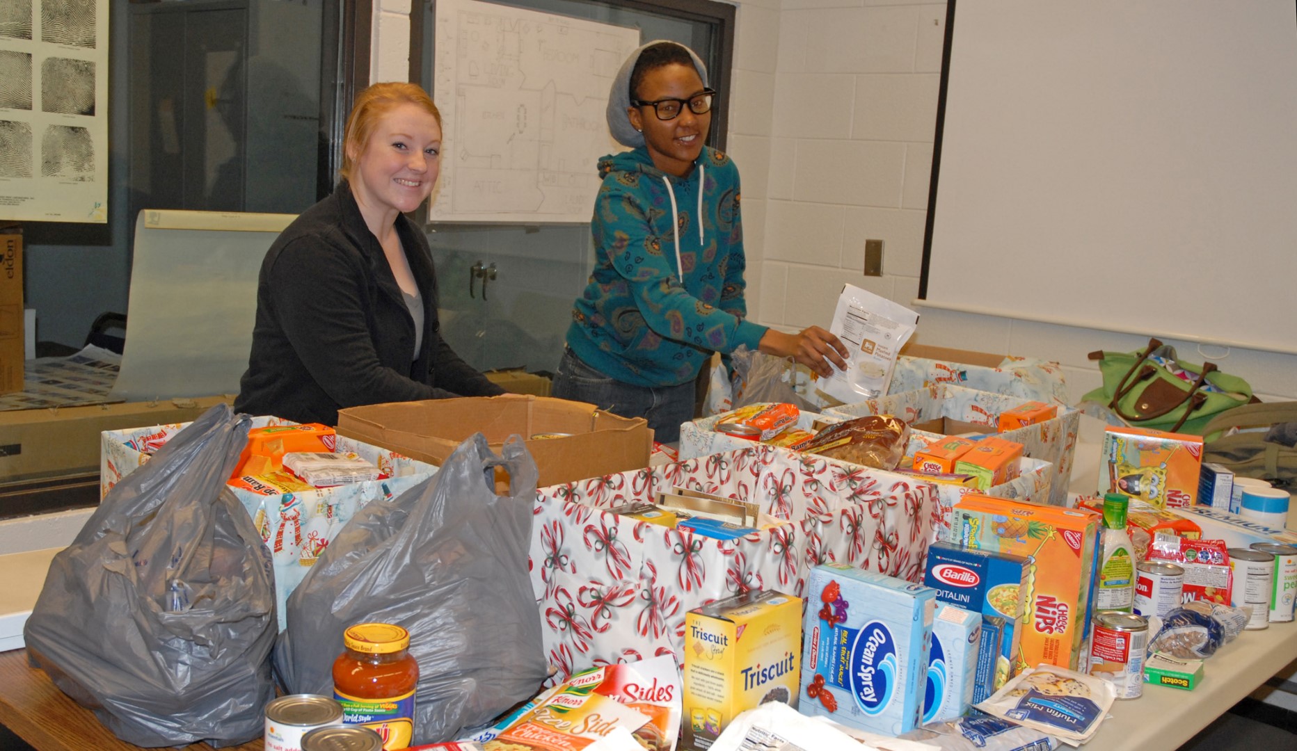 Students in the Criminal Justice Club at Vance-Granville Community College responded to growing concerns about the effects of hunger on local communities by conducting the club’s annual food drive in December. Members collected over 200 pounds of food, filling six large boxes. These donations were distributed to needy families in Granville, Warren and Vance counties. Pictured here, from left: two VGCC Criminal Justice students, Taylor Lawrence of Kittrell and Brittney Randolph of Oxford pack boxes to be delivered. For more information on the Criminal Justice program, call Steven Hargrove at (252) 738-3467.