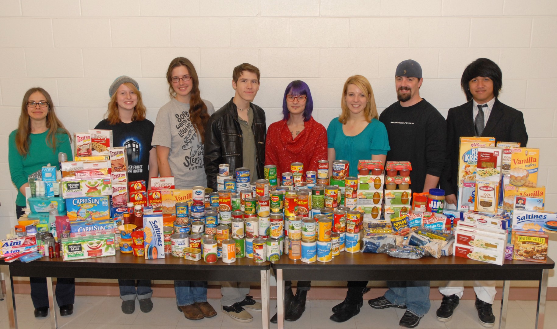 Vance-Granville Community College’s History Club recently conducted a food drive as its major service project of the fall semester. Students collected non-perishable food items, as well as paper products and hygiene products, which were donated to the Food Bank of Central & Eastern North Carolina. The donations weighed in at 372 pounds, which translates to 313 meals according to the food bank’s formula. Club members expressed their appreciation for the support they received from students, faculty and staff on all four VGCC campuses and from the community. Pictured above with the items collected during the drive are, from left: Natasha Thompson (History instructor and club advisor), Julleah Norton of Henderson, Jessie Hartley of Oxford (club public information officer), Morgan McFalls of Oxford (vice president), Jennifer Burns of Henderson (president), Victoria Klesmith (History instructor and club advisor), Brian Edwards of Wake Forest and Justin Dizon of Butner. Club officers who are not pictured include secretary Ashley Hedrick of Kittrell and treasurer Jeffrey Worley of Butner.