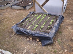 When we planted in February our first 6 plots of our plot garden, we seeded Lettuce, Spinach, Bok Choy, Carrots, and Sugar Snap Peas. We have two plots that are showing a good growth of plants right now, the others are very small and sporadic seedlings. This is not cause for alarm due to the different germination tables to the various seed varieties. It is always a good practice to keep your seed packaging in a drawer or a storage location so that you can refer back to the information printed. Referencing this information can tell you if your seeds are past the suggested rate of germination. Since we are still in the early spring planting cycle, it is not uncommon to have to replant seeds into this style of plot gardens. You need to use your own judgment as to how long past the recommended time of germination you will allow before you replant. Most generally, we allow an additional 2 weeks past the printed date to make sure that the weather patterns may have played a role in the delayed germination. Pictured below is one of our plots that have lettuce in it. By the time of our next issue we should have quite a lot more vegetation to look at. Don’t despair; just be patient for all those seeds to grow!