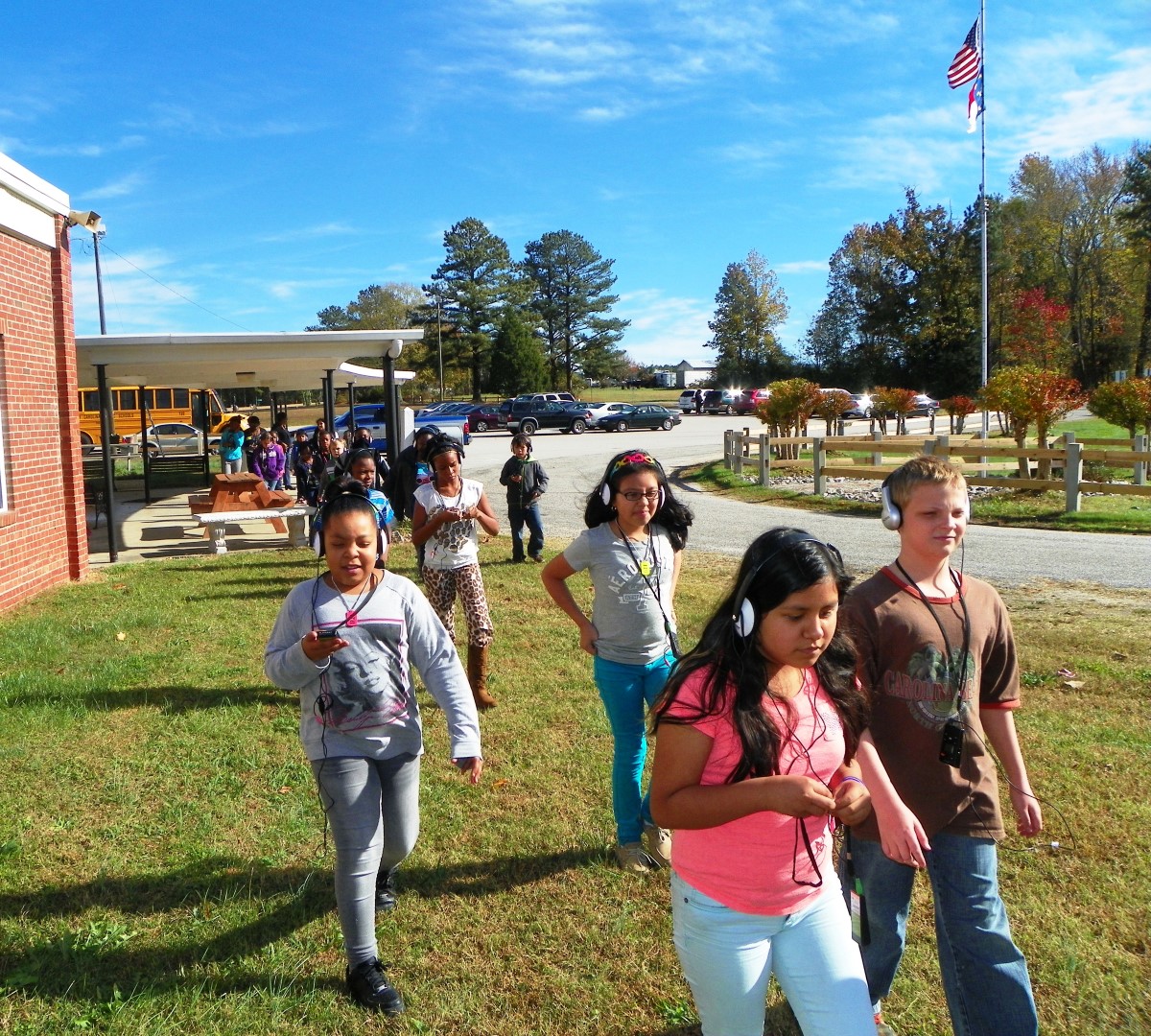 Fields’ fifth graders and Miles’ fourth graders are among the students who use the miniature disc players and headphones to listen to the audio instruction as they walk around the school’s campus. The “Walking Classroom” was purchased with a $1,600 grant and allows the students to get good, physical exercise while learning in the process.