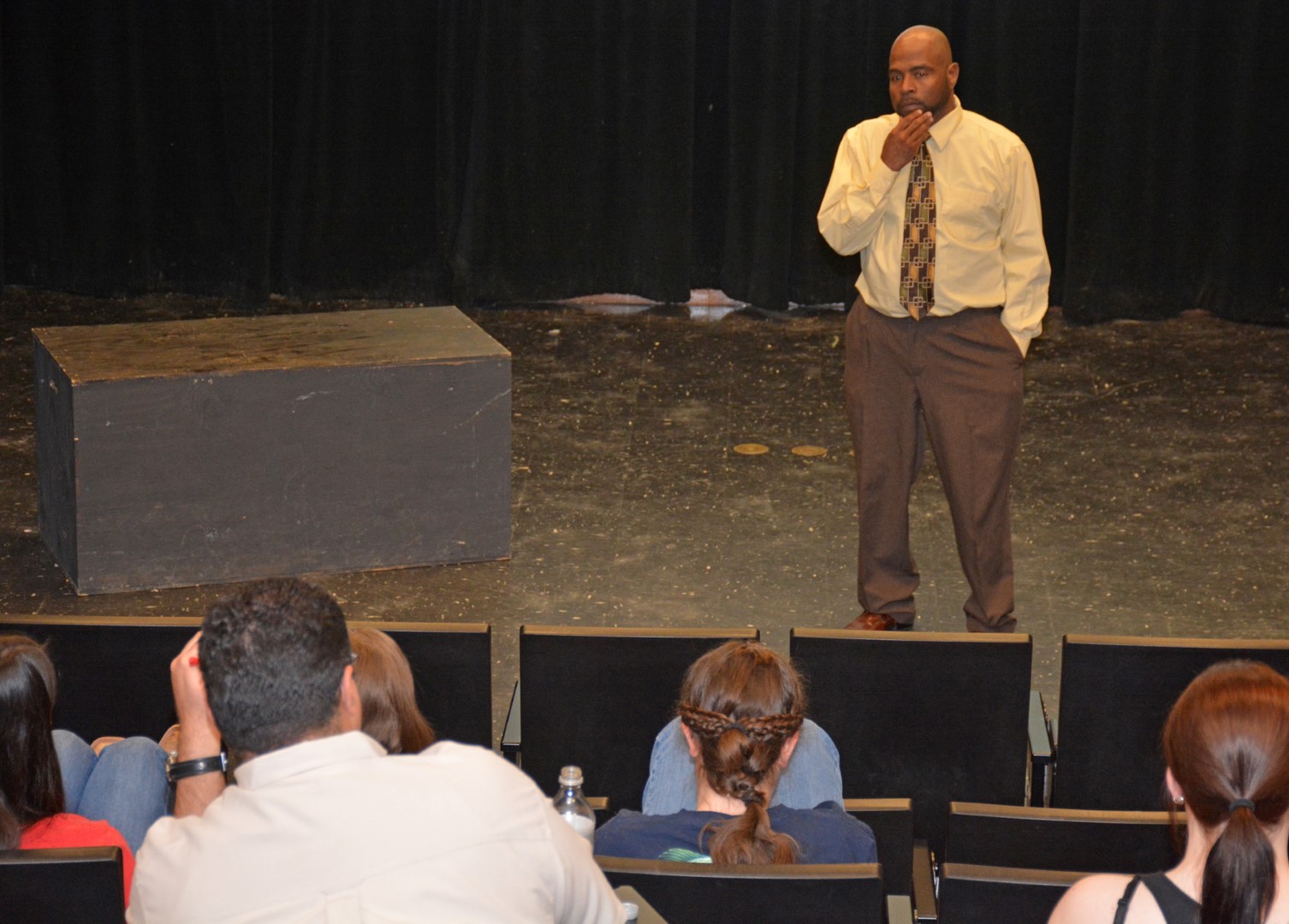 VGCC art instructor Isaac Talley of Oxford lectures on issues of wealth, power and art. (VGCC photo)