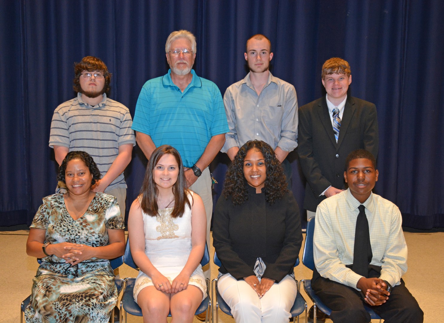 VGCC students from Vance County who were inducted into the Phi Theta Kappa honor society on April 14 included, seated, from left: Andrea Hayes, Mallory Falkner, Zsaquiela Hawkins and Stephon Sample; standing, from left: Benjamin Layton, Lawrence Yates, William Nutt and Thomas Grissom. (VGCC Photo)
