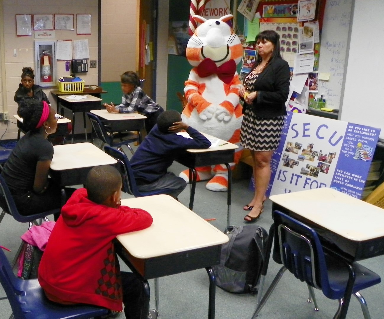 For students in grades 3-5, presenters offering valuable information about future career choices included: representatives from the State Employees’ Credit Union along with their mascot Fat Cat; firefighters from the Vance County Fire Department; Greg Kelly and Kendrick Vann of the Henderson-Vance Parks and Recreation Department; Bobby Austin, a radiology instructor with Vance-Granville Community College; Teresa Floyd, a cosmetologist; the Rev. Frank Sossamon of South Henderson Pentecostal Holiness Church and Michael Putney, an assistant district attorney.