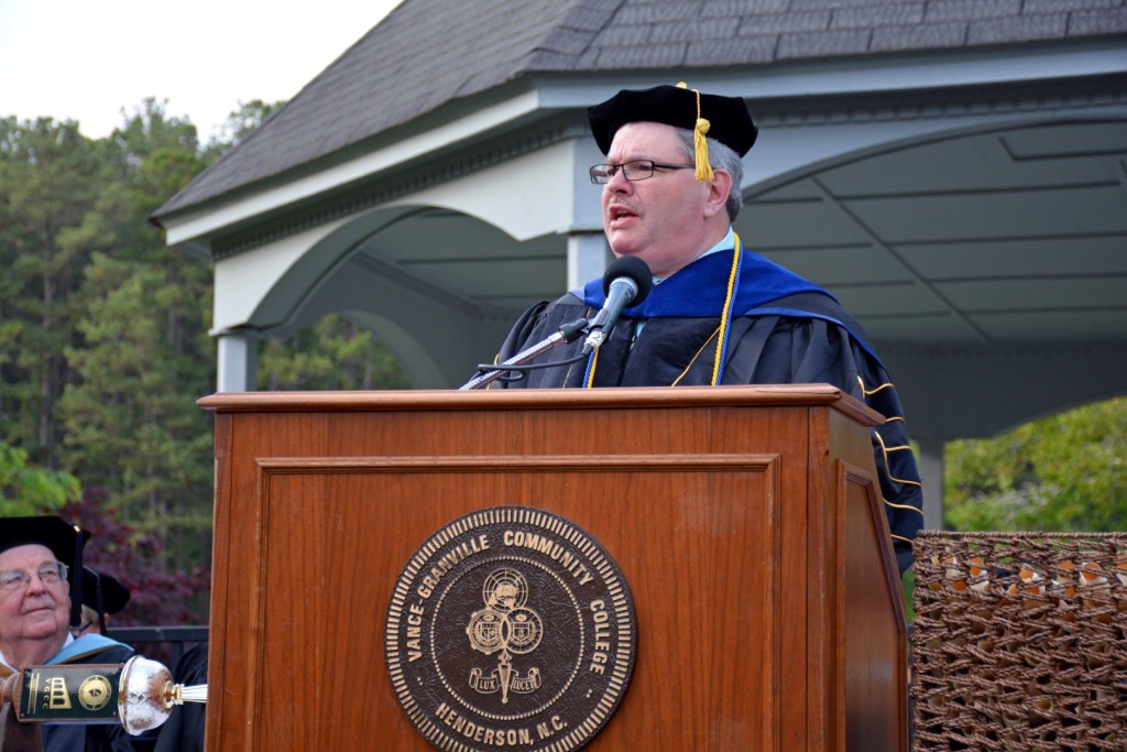 “I am one of you,” Godwin said to this year’s class. “As a graduate of VGCC, I am thrilled to come home and speak to all of these successful graduates.” His alma mater “is and will always be home to me,” he added. “There’s no doubt about it that I am standing here today because of the people at Vance-Granville, and because of the community atmosphere here.” Godwin recalled that the small classes and personal assistance he received from instructors at VGCC allowed him to succeed. “I would have been lost if I had gone first to a four-year school, and I don’t know that I would have made it,” he said. “VGCC completely changed my life. The late Thomas Long, formerly the department head of Criminal Justice for 20 years, not only changed my life but was like a father figure to me.”