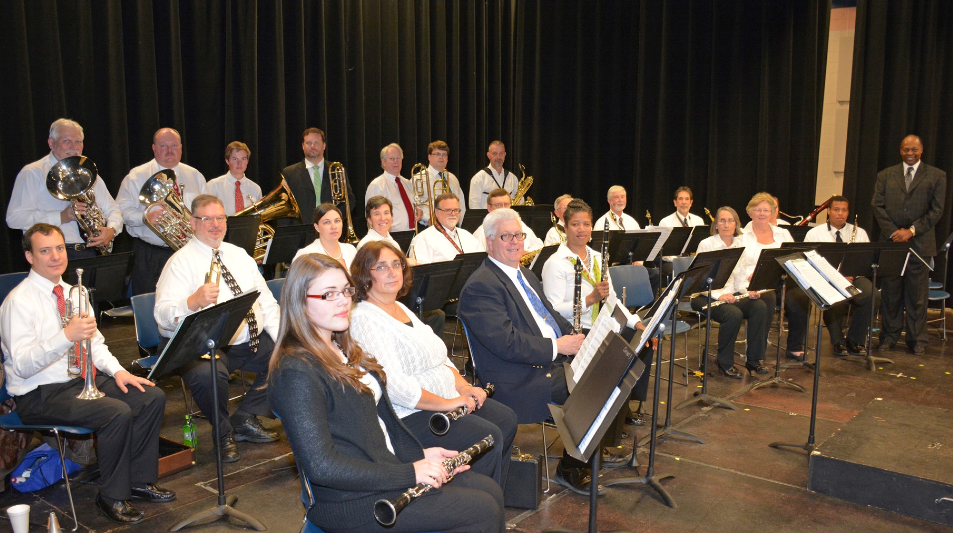 The Vance-Granville Community Band, as seen at their December 2014 concert. Ivory Brock, the band’s primary conductor, is standing at right. (VGCC photo)