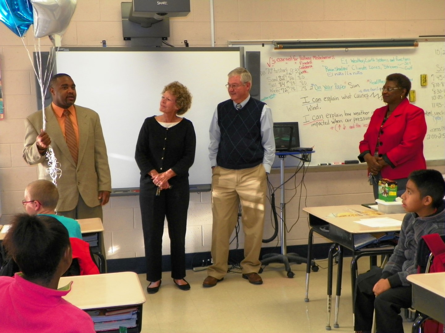 Superintendent Anthony Jackson made the announcement that Cooper had won the prestigious honor. He was presented balloons by Ruth Hartness, a member of the board, and a planted dish garden by Dorothy Gooche, another member of the board. Ed Wilson, also a board member, participated in the presentation.