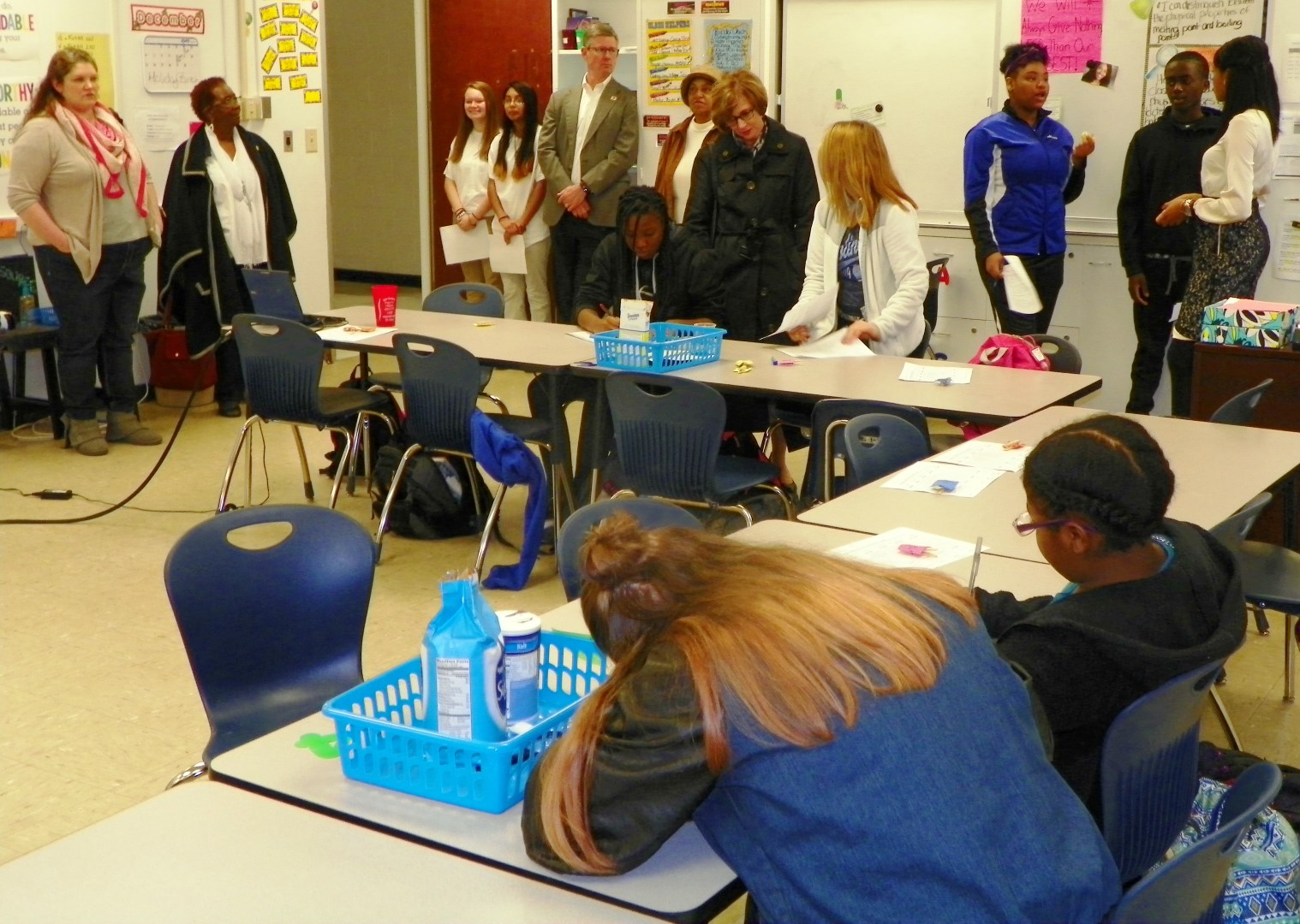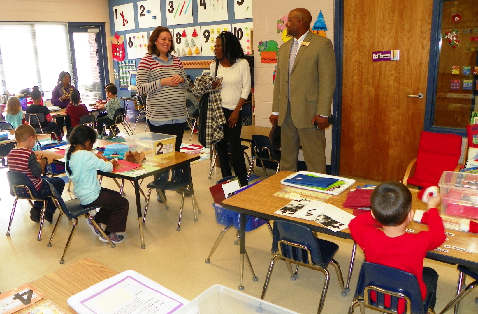 They began their day with a light breakfast at the schools’ Administrative Services Center and then visited four local schools: STEM Early High School (shown in the first photo), Pinkston Street Elementary School; Aycock Elementary School (shown in the second photo) and Southern Vance High School. At each school, they visited with teachers and students in classrooms and learned about several special programs, including the Vance Medical Academy and Fire and Public Safety Academy. The event ended with lunch at the administrative center.