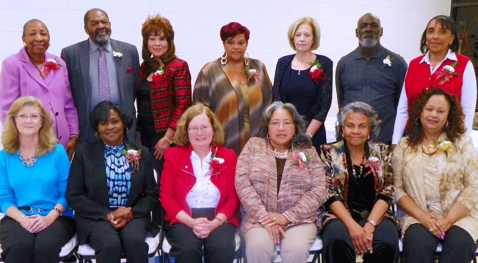 The honorees are shown in the photo and included, seated from left, Janice Ellington of Carver; Lucille Alston of Aycock; Pam Grissom of E.M. Rollins; Erma Boyd of Pinkston Street; Edna Bartley-Hargrove of Pinkston Street; and Joyce Bullock of Pinkston Street. Standing, from left, are Laura Fisher of Clarke; Ronald E. Gregory, former superintendent; Linda Gregory of Southern Vance; Katrina Waters of Pinkston Street; Margaret Kittrell of Dabney; Rey Pharr of Aycock; and Audrey Skipwith of Southern Vance.