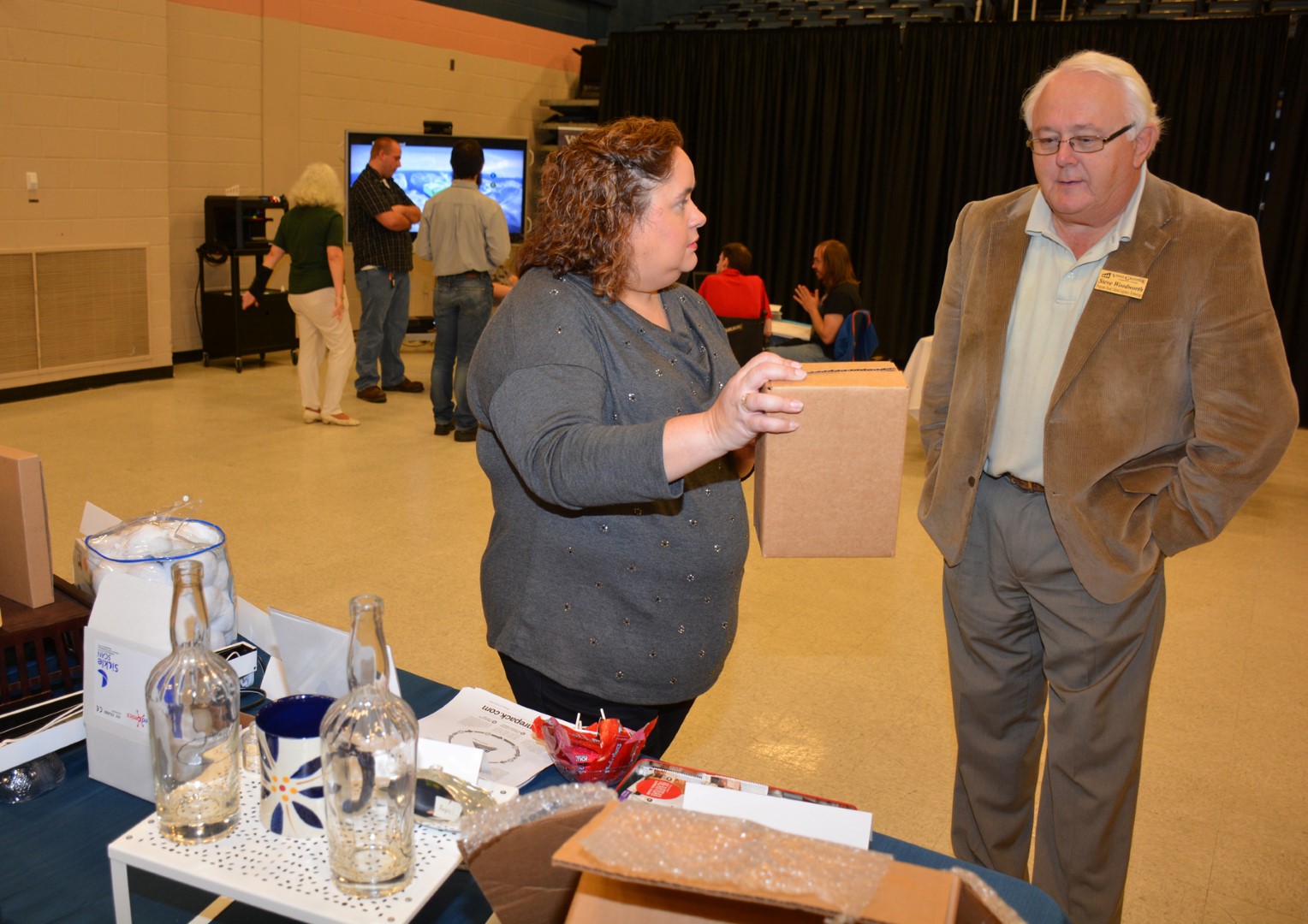 Theresa Chiplis (left) from WMR Packaging & Design talks with Steve Woodworth, head of VGCC’s Global Logistics & Distribution Management program, during the Business Technologies Fair. Chiplis, a graduate of the Global Logistics program, works for WMR as a Systems/Logistics Specialist based at the company’s Creedmoor location. (VGCC photo)