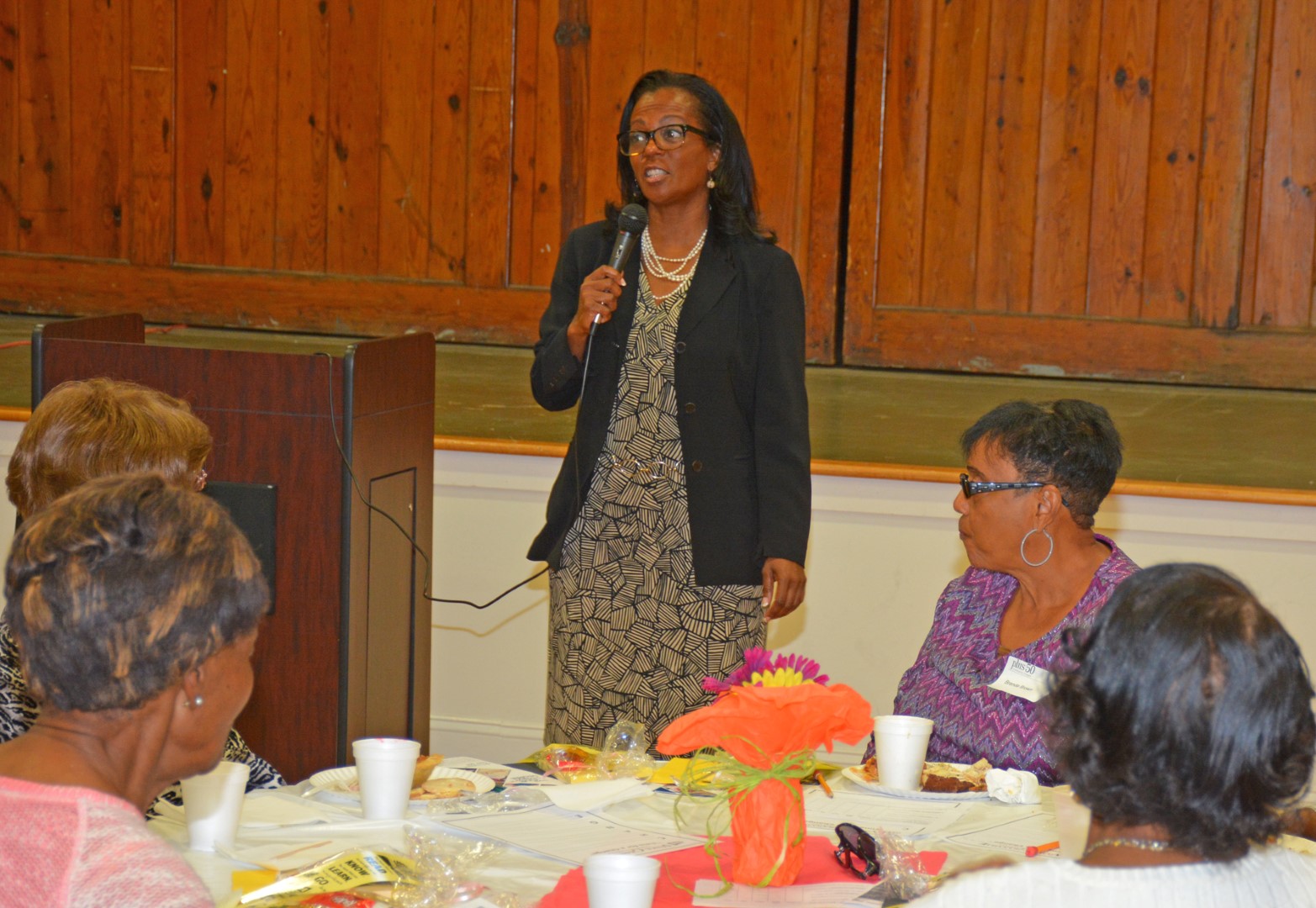 Anita Hicks speaks at the Warren County Armory Civic Center for a VGCC “Plus 50” event. (VGCC photo)