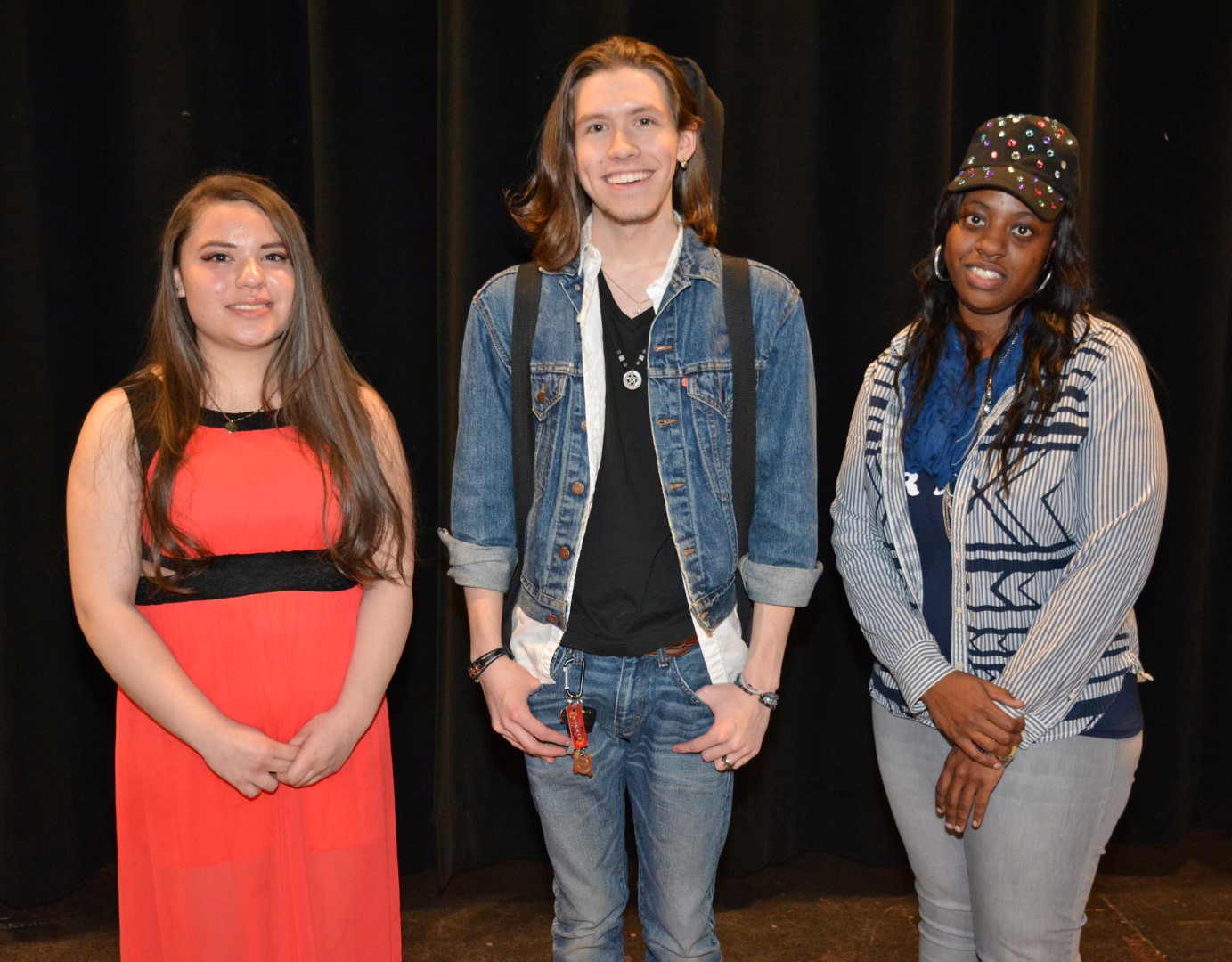 From left, VGCC students Elizabeth Gonzalez of Henderson, who placed third in the talent competition; Morgan McFalls, the winner; and Brittany Jordan of Warrenton, the runner-up. (VGCC photo)