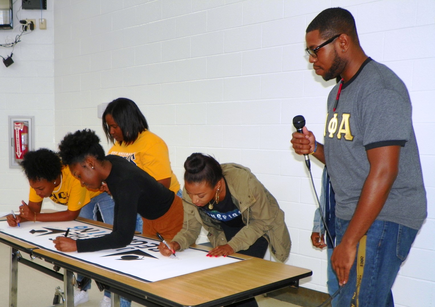 Jonathan Carlock, a 2015 graduate of Southern Vance, also spoke to the group as they enjoyed pizza and refreshments. He talked with them about taking their commitment to attend college seriously, staying on top of their studies and not getting behind on assignments.