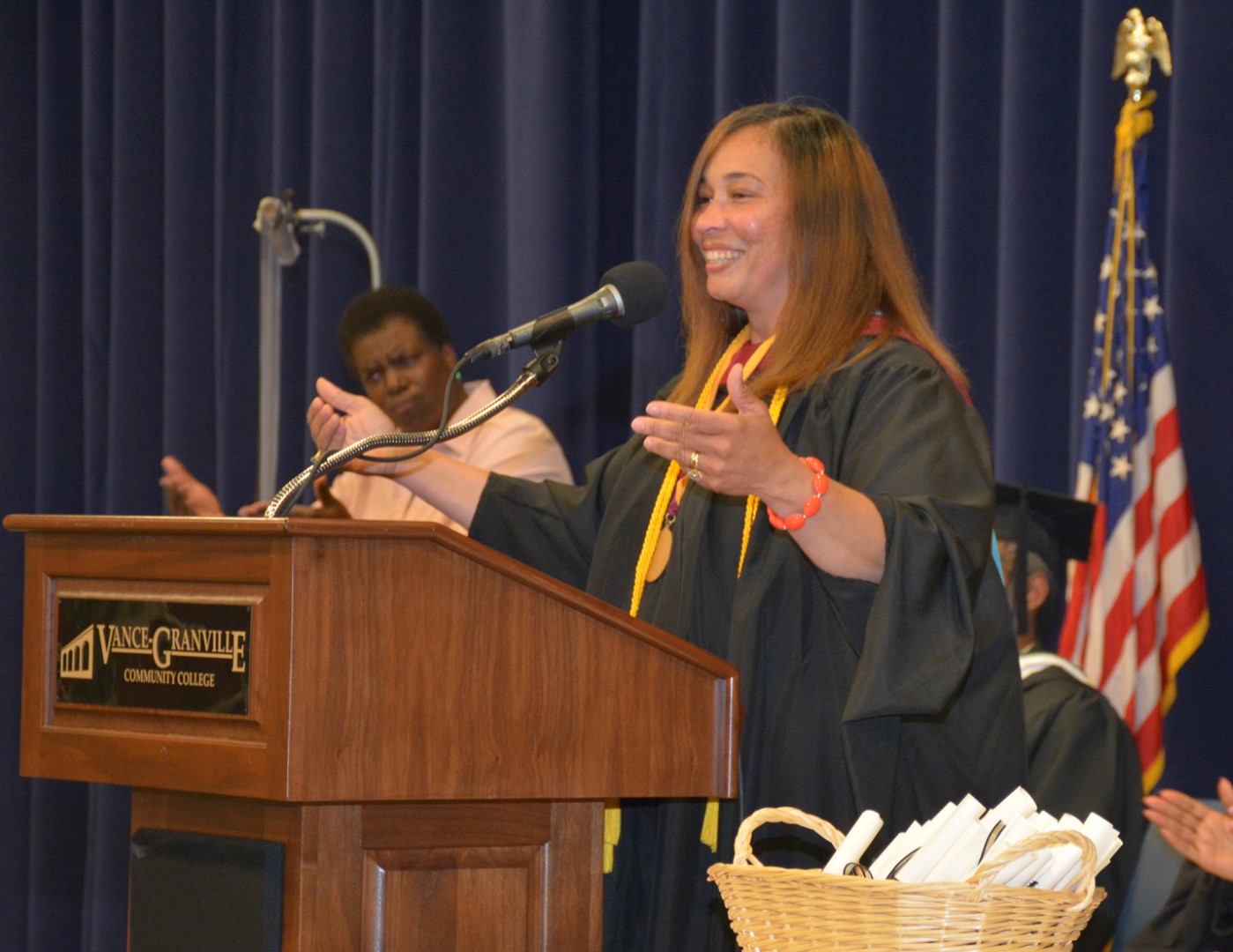 “I encourage people to go to Vance-Granville, because I know that the people here care about you,” she said. “They love you and they want you to succeed…. I was catapulted into my educational career through this institution. This is just the beginning of where you can go, but you have to believe in yourself.”