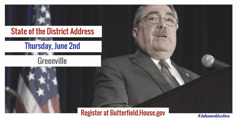 Join me for my State of the District meeting in Greenville on June 2 to discuss current issues facing Congress and the first district. Hear updates from state and local elected officials, as well as live music from local performers. A reception will follow the event.
