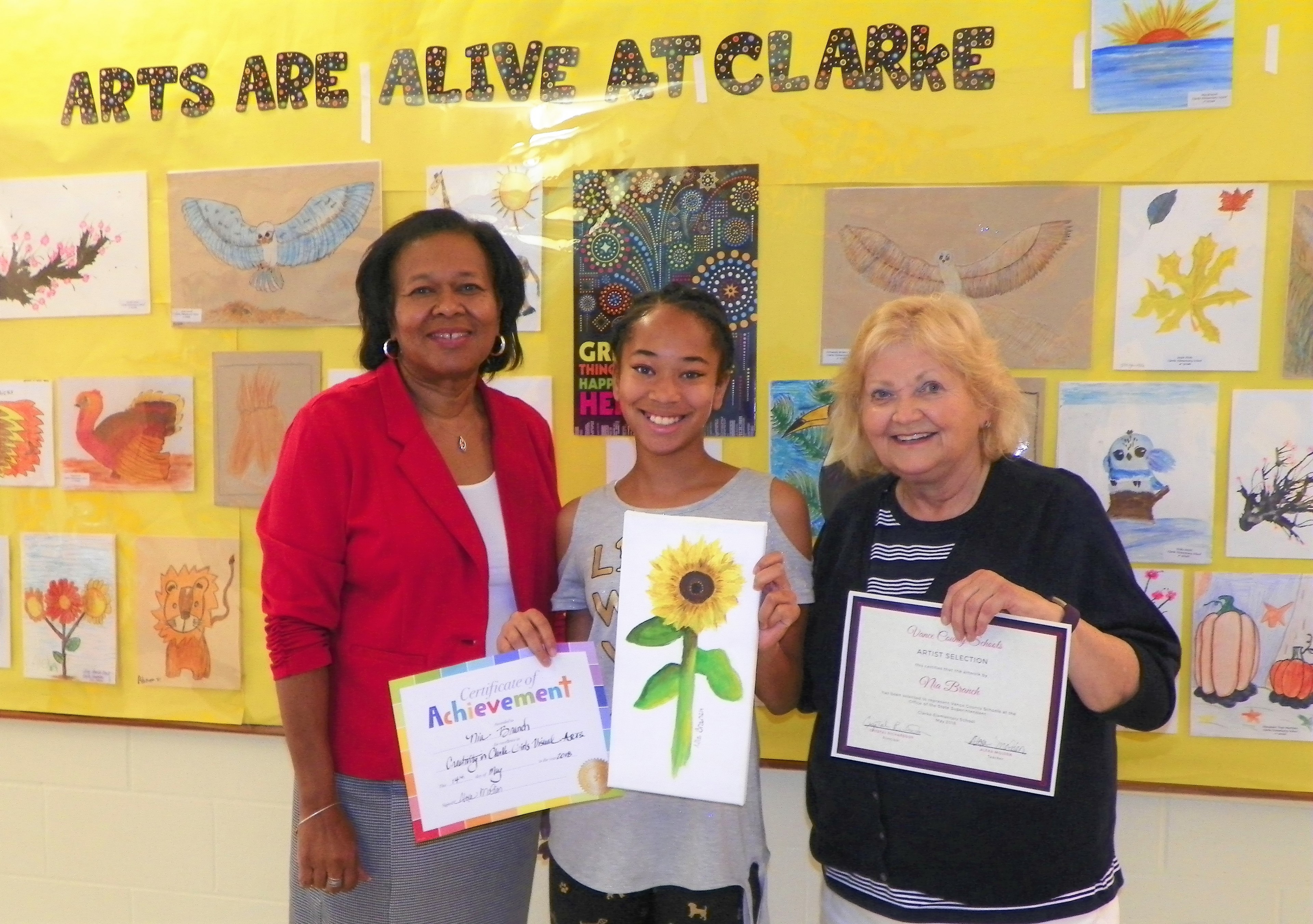 The sunflower painting of Nia Branch, a fifth-grade student at Clarke Elementary School, has been selected to represent Vance County Schools in a display of student artwork from across the state at the N.C. Department of Public Instruction in Raleigh. The sunflower painting, which Nia is holding in the above photo, will actually hang outside the office of N.C. Superintendent of Public Instruction Mark Johnson. It will be included among the 115 pieces of student artwork in the display, with one …